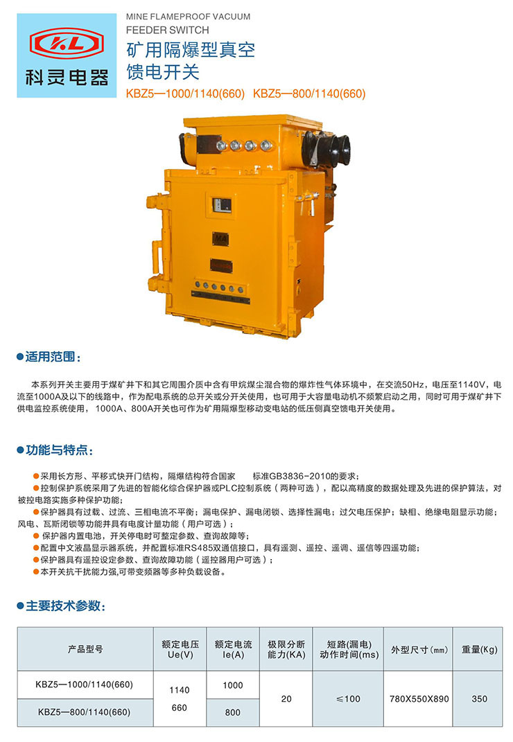 礦用隔爆型真空饋電開(kāi)關(guān)