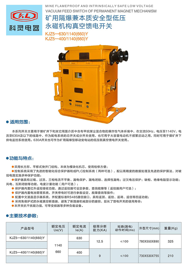 礦用隔爆兼本質(zhì)安全型永磁機構真空饋電開(kāi)關(guān)